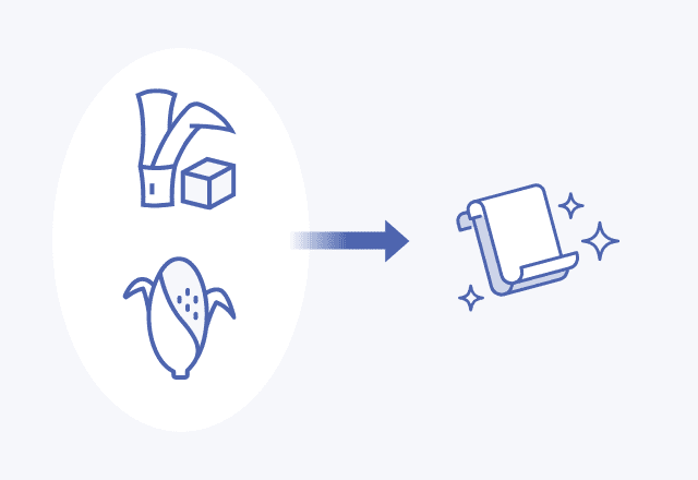 バイオマス(植物非食部由来)原料を65%以上使用して、CO2排出量を35%以上削減します。